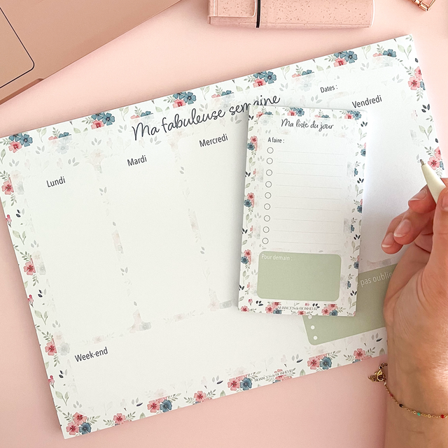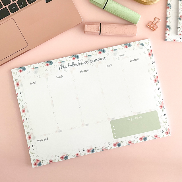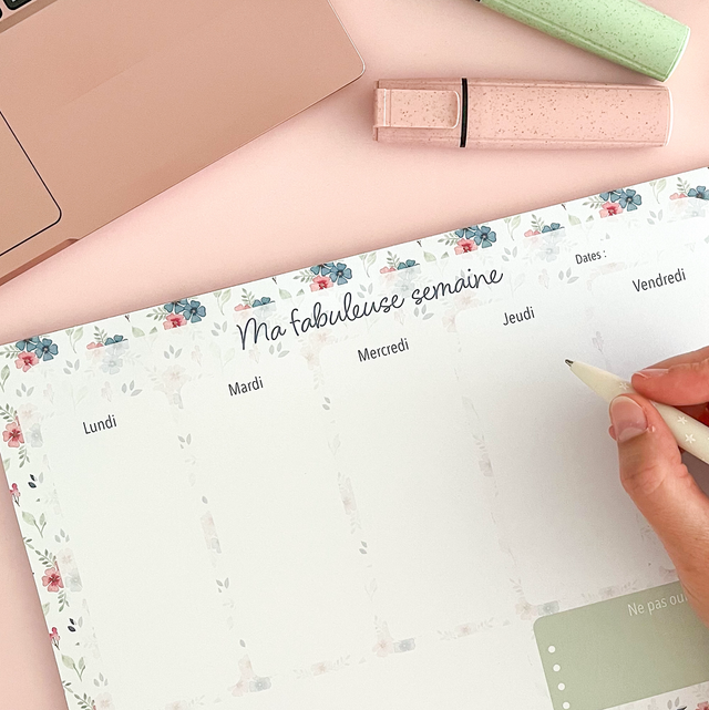 Organise tes journées avec douceur grâce à ce semainier A4. Illustré à l’aquarelle dans mon atelier, il t’accompagne pour planifier ta semaine en un coup d’œil. Idéal pour noter tes rendez-vous, tes priorités ou tes petits objectifs, il devient ton allié pour alléger ton esprit et avancer sereinement.